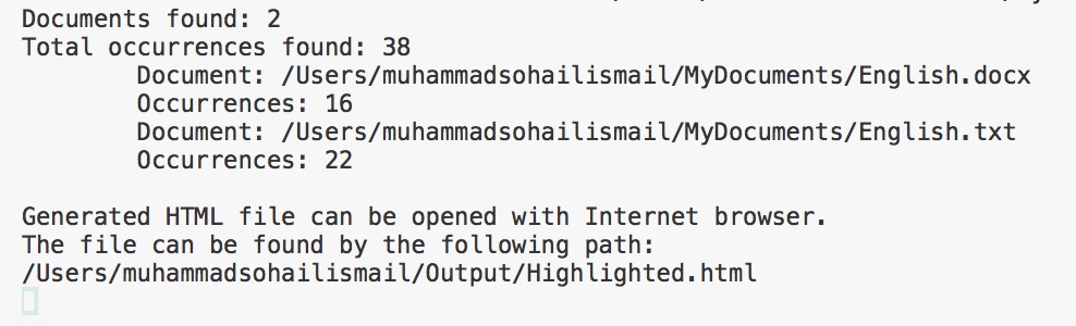 string documentsFolder = @"/Users/muhammadsohailismail/MyDocuments/"; // Specify the path to a folder containing documents to search