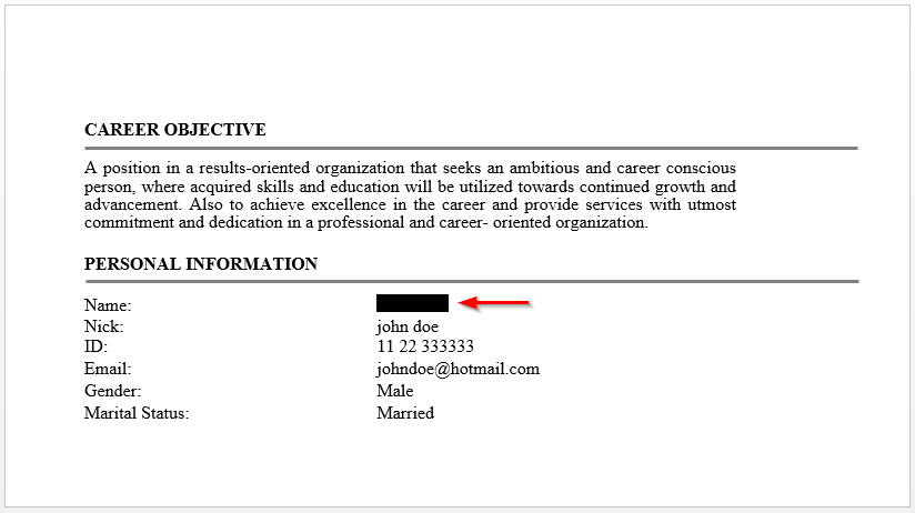 คุณสามารถค้นหาและแก้ไขตามตัวพิมพ์เล็กและใหญ่ได้ โค้ดต่อไปนี้จะแทนที่คำว่า “John Doe” ที่คำนึงถึงตัวพิมพ์เล็กและใหญ่ แต่ไม่ใช่ “john doe” ภายในเอกสาร PDF โดยใช้ Java
