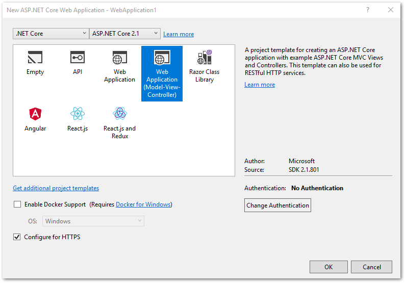 - เลือก Web Application (Model-View-Controller) แล้วคลิกปุ่ม Ok