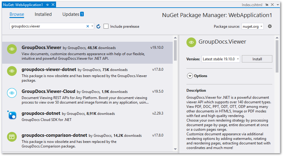 - ติดตั้ง GroupDocs.Viewer จาก NuGet